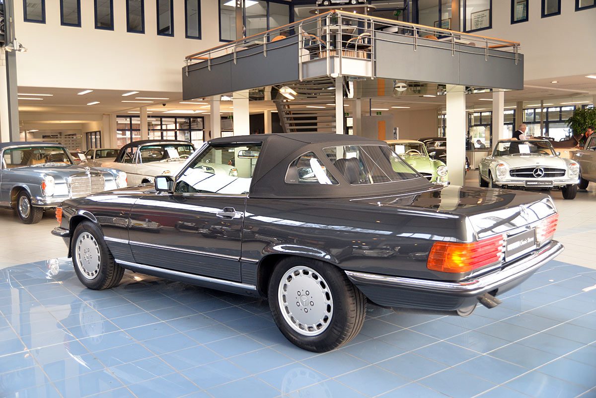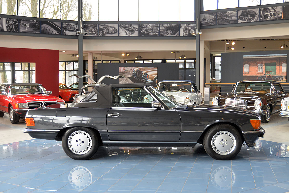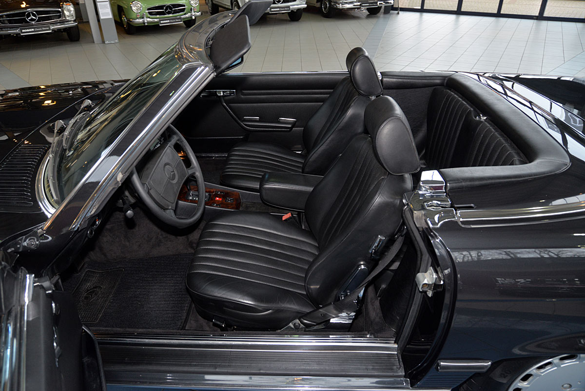 Ein solch modellgepflegtes und äußerst beliebtes Modell ist dieser Mercedes-Benz 500SL aus 1986, mit seinem kräftigen 8-Zylinder-Motor. Er wurde im Mai 1986 nach Bayern ausgeliefert und war im Besitz einer Dame im ländlichen Münchner Umkreis. Die Ausstattung war reichhaltig und beinhaltete unter anderem einen Fahrer-Airbag, wärmedämmende Rundumverglasung, beheizte Spiegel, Mittelarmlehne vorn und Fondsitzbank. Am 22. November 2013 ließ Sie den Wagen beim Landratsamt Bad Tölz-Wolfratshausen abmelden. Zum Jahreswechsel 2017/2018 übernahmen wir den Wagen in unseren Bestand und freuen uns, Ihnen diese echte Rarität anbieten zu können.