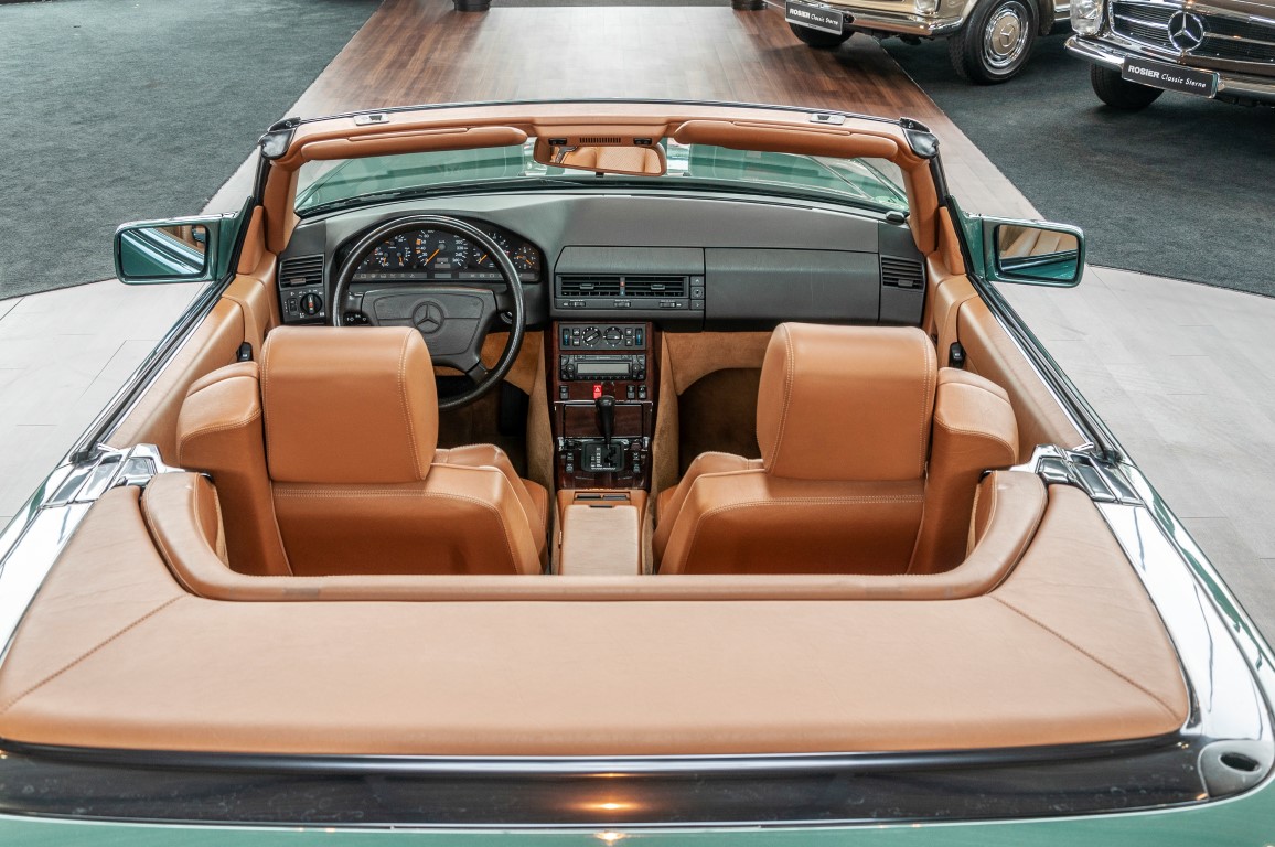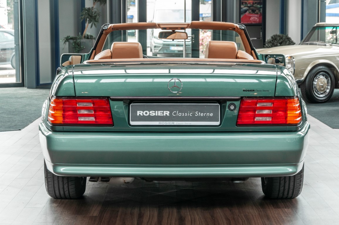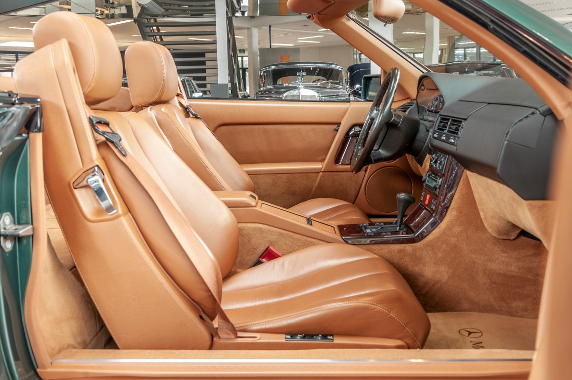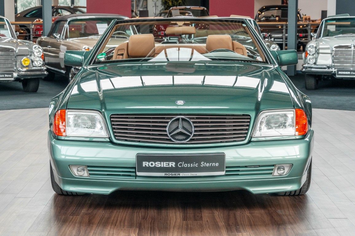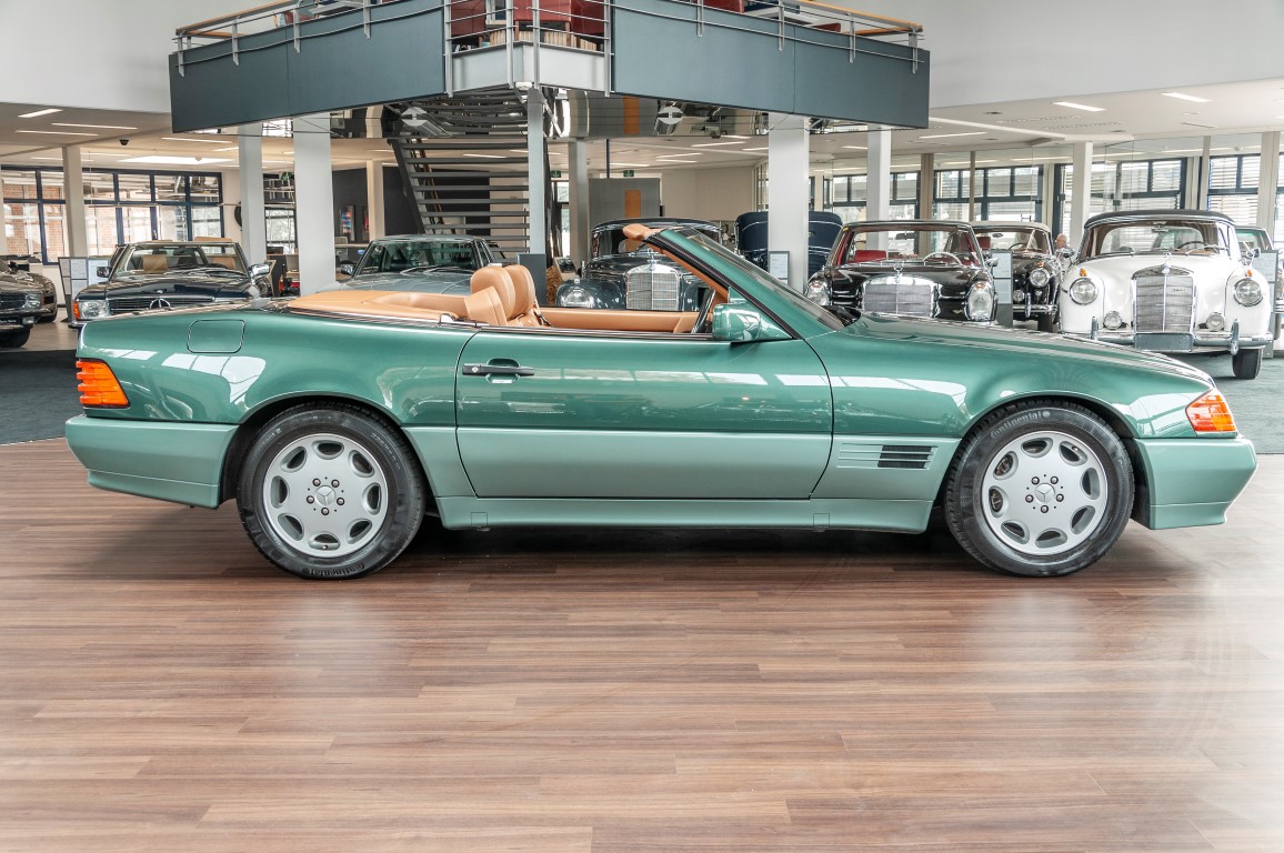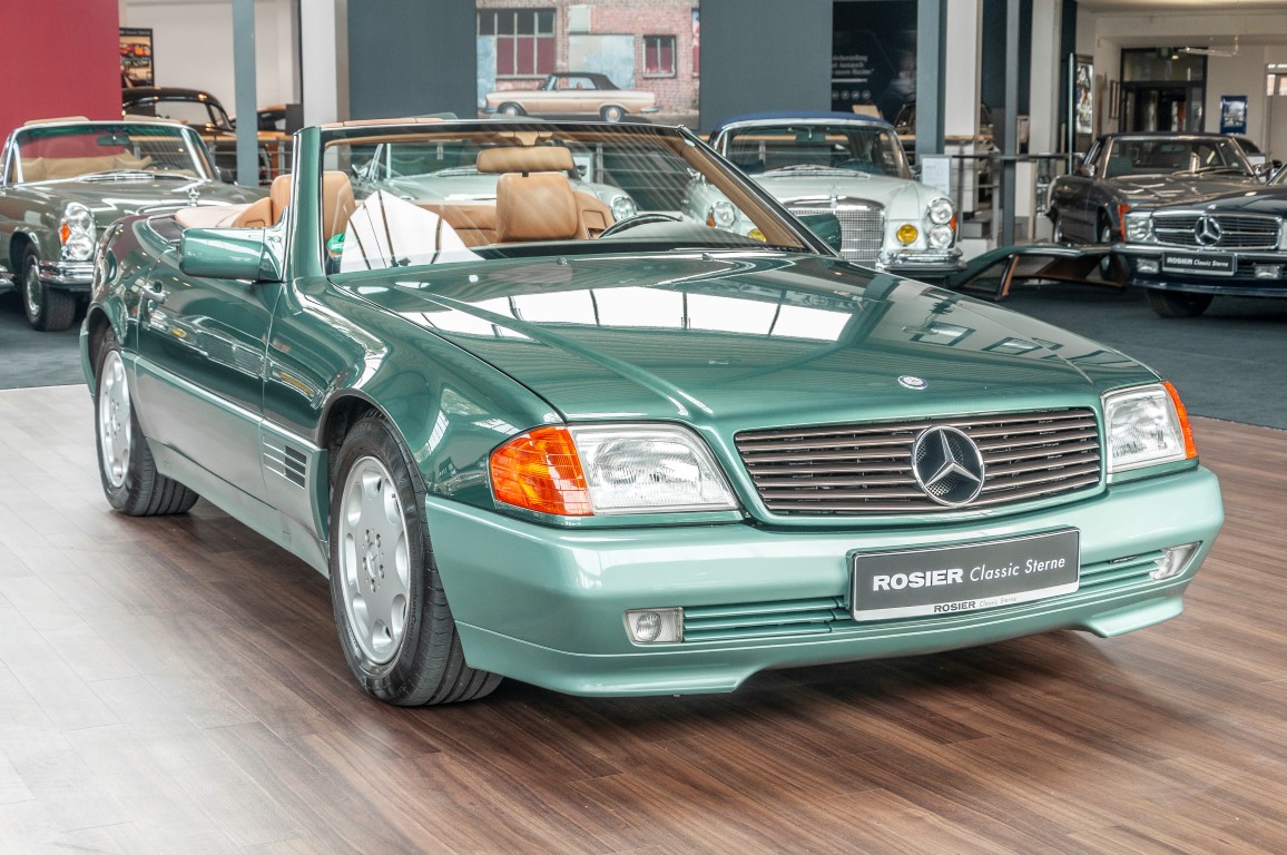 Ein traumschöner SL500 aus der so beliebten R129 Serie in hocheleganter Farbkombination. Malachitgrün in Verbindung mit Lederausstattung in „Dattel“ und dunkelbraunem Soft-Top, dazu eine reichhaltige Ausstattung, so hatte ein Unternehmer aus Mönchengladbach den Traumroadster bestellt. Am 25. Juni 1992 wurde das Fahrzeug geliefert. Der Wagen wurde wenig gefahren, erhielt aber regelmäßig Kundendienste, damit die Einsatzbereitschaft zu jeder Zeit gewährleistet war. In 2011 wurde der Wagen auf die Ehefrau umgeschrieben und blieb in Ihrem Besitz weiter bis 2016. Als der Wagen verkauft wurde, hatte er gerade einmal 22.000km gelaufen. Ein Norddeutscher Sammler erwarb den eleganten Roadster und fuhr ihn etwa 4.000km jährlich. Nun soll der Wagen in eine neue „Gute Hand“ abgegeben werden. Er hat gerade einmal 32.000 Originalkilometer gelaufen, ist bestens gepflegt und ein Klassiker der Zukunft. Jetzt ist er dank Katalysator schon günstig zu fahren und in nur 35 Monaten kann er das so begehrte H-Kennzeichen bekommen, mit allen Vorzügen eines solchen. Gerne zeigen wir Ihnen diesen traumschönen SL500 Roadster hier in unserer Ausstellung in Oldenburg. Vielleicht kommen wir ja ins Geschäft.