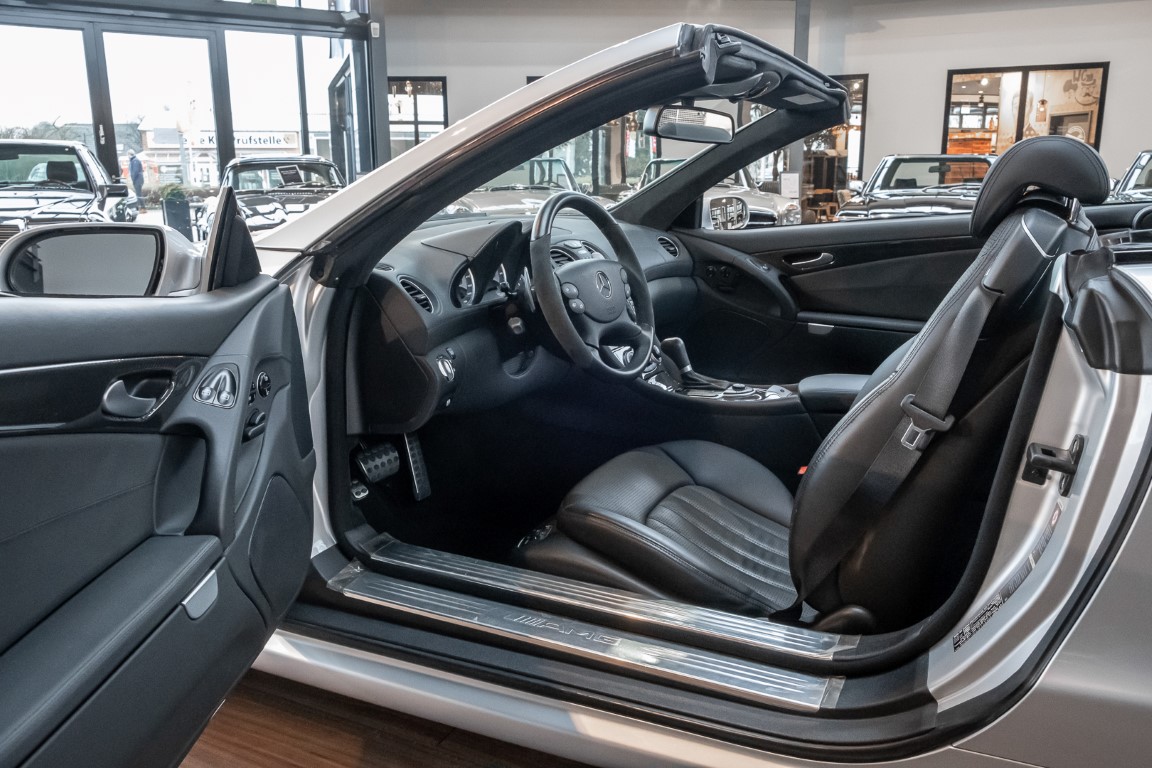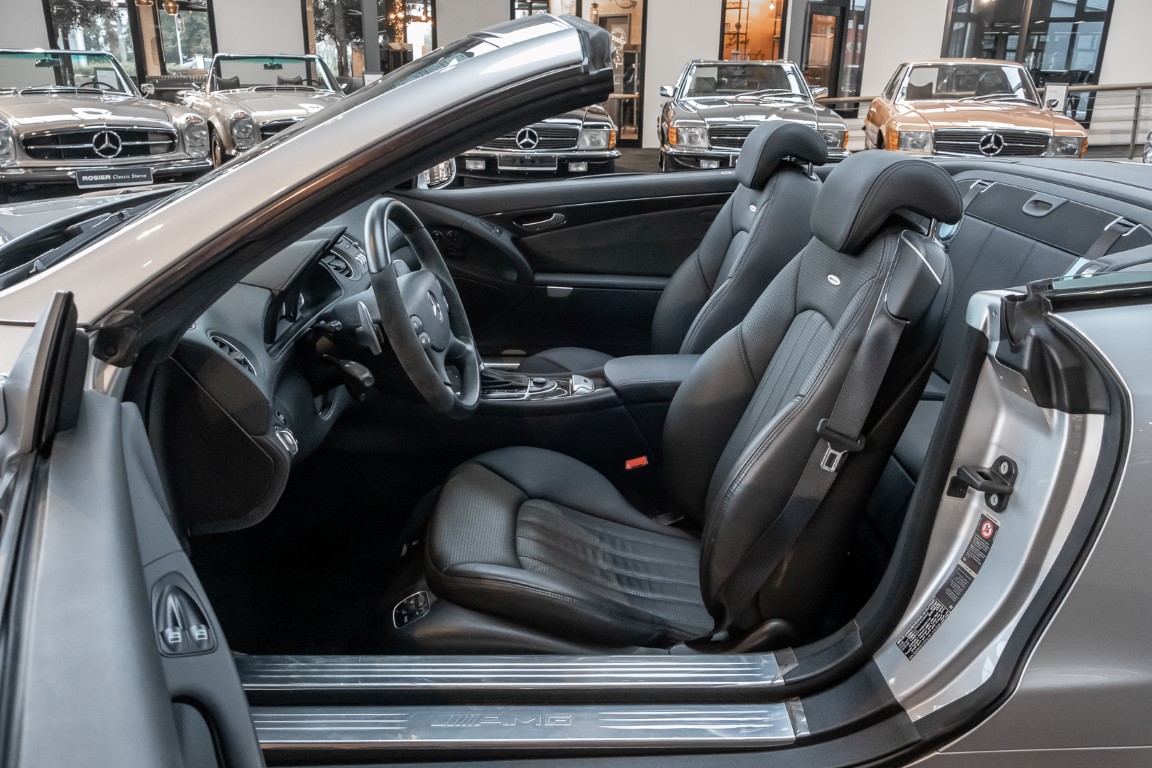 Ausgeliefert wurde dieser Traum-Roadster im Jahre 2007 in die Vereinigten Arabischen Emirate. Allem Anschein nach war das zeitlose Cabrio im zeitlos-stilvollem Farbton Iridium-Silber Metallic Teil einer Sammlung, mit dem einzigen Ziel, ein Stück Mercedes-Benz Geschichte zu konservieren. Und das gelang dem Sammler hervorragend: die Sitze sind nie benutzt und auch das Lenkrad weißt Spuren der Benutzung auf, kein noch so kleiner Hauch von Bremsstaub befindet sich auf dem Felgeninneren und nicht einmal die Schutzfolien an Eintrittsleisten und Sicherheitsgurten sind bis heute entfernt worden. Man riecht förmlich noch den Neuwagengeruch, so als wäre das Fahrzeug eben erst ausgeliefert worden.