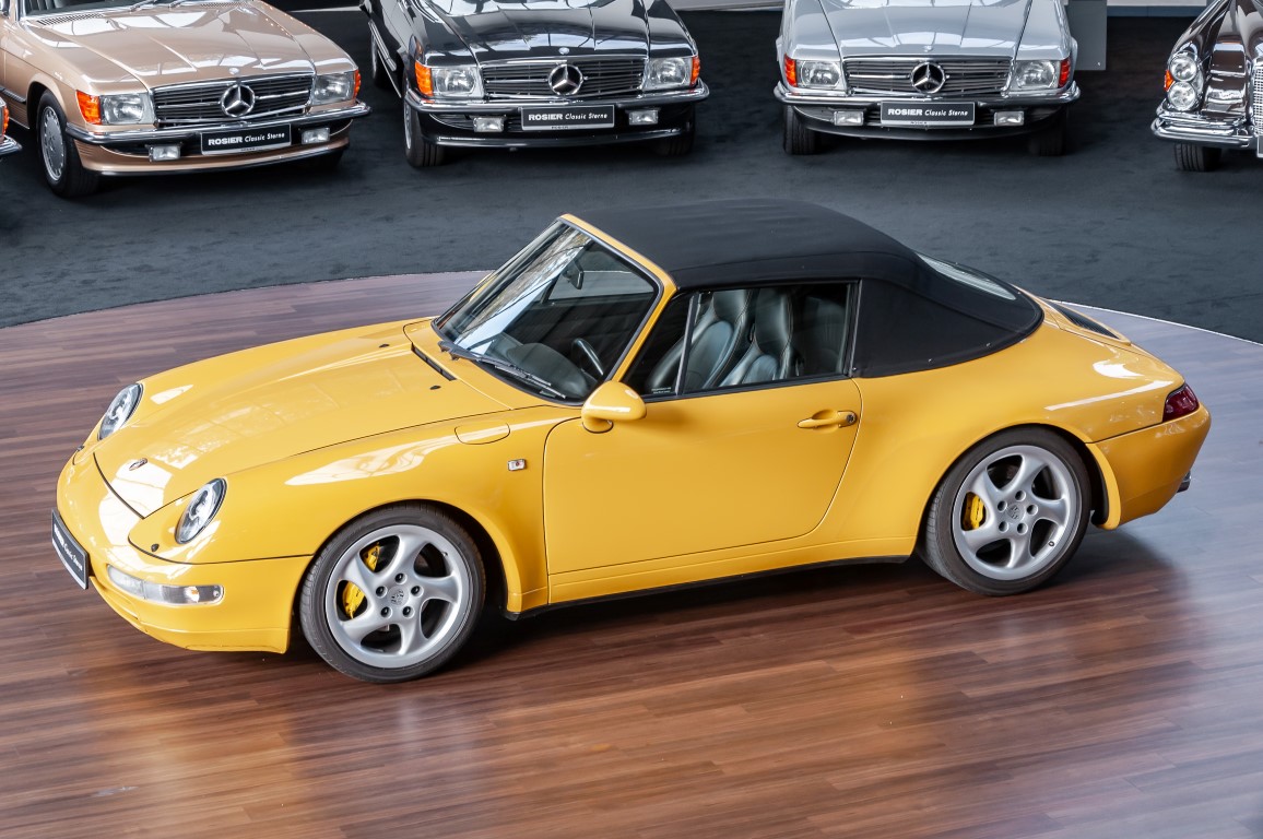 Dieses Porsche 993 Cabriolet wurde am 20. Februar 1995, in sportlichem Speedgelb und schwarzer Lederausstattung, an seinen Erstbesitzer im Bayrischen Germeringen ausgeliefert. Bei Ihm verblieb der Wagen die nächsten rund 14 Jahre. Etwa 80.000 km hatte er gelaufen und wurde bestens gepflegt. Etwa in 2010 fand er ein neues Zuhause in der malerischen Bodeseeregion, oberhalb von Lindau. Dort erwarb ihn sein bis heute letzter Besitzer für seine sorgfältig ausgewählte Sportwagensammlung.