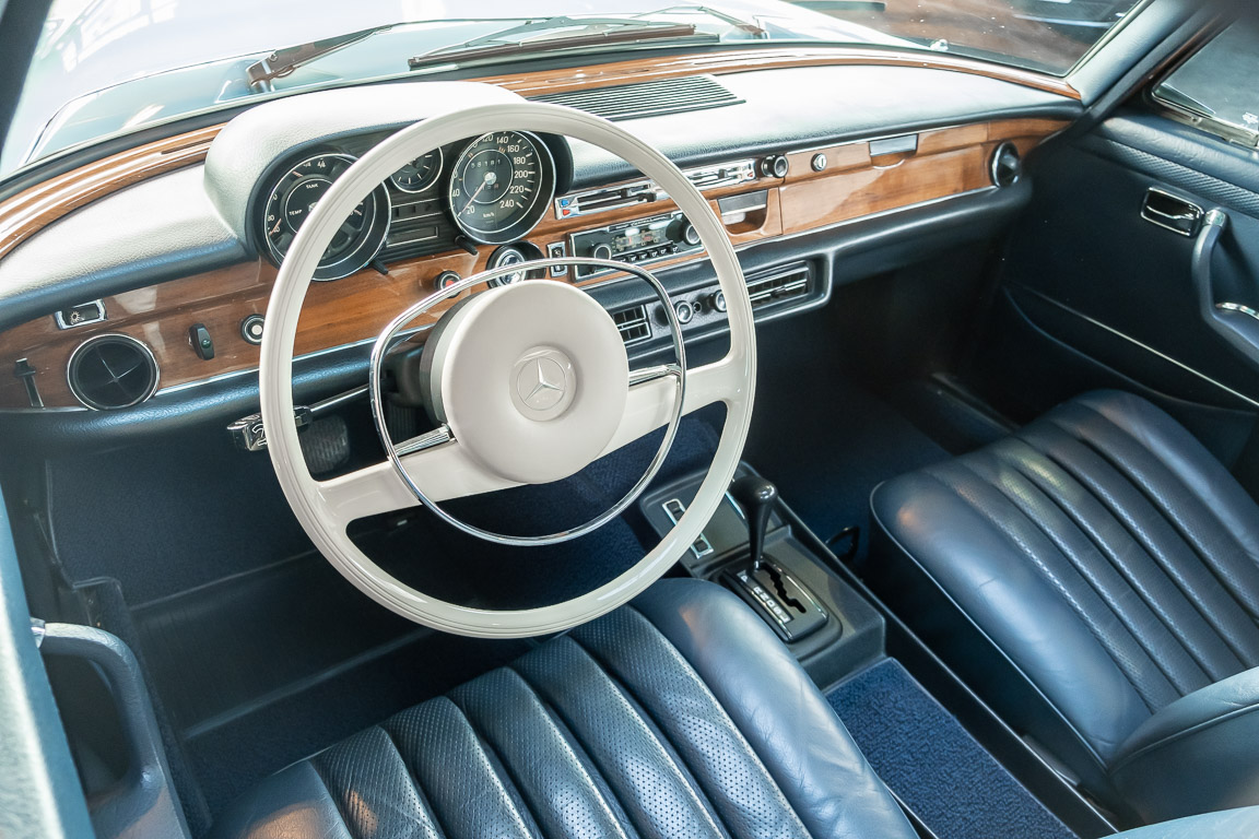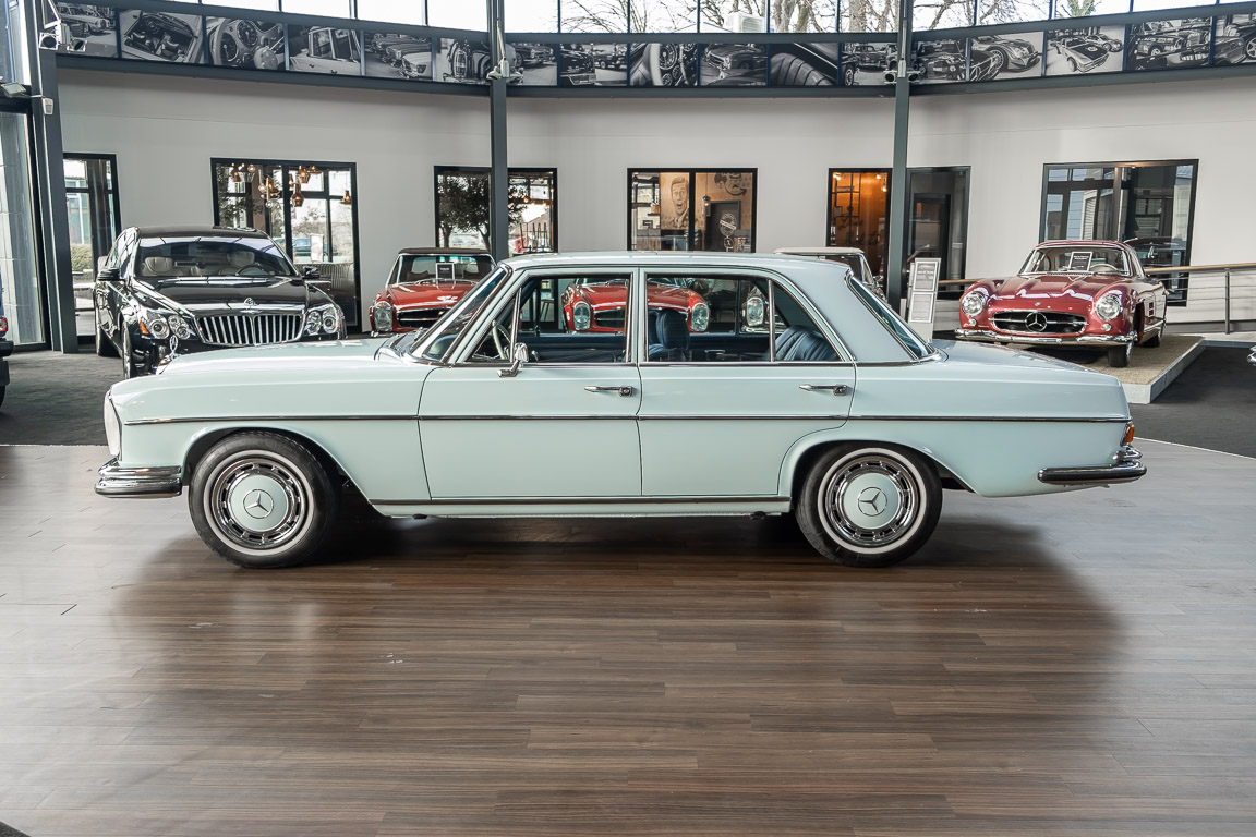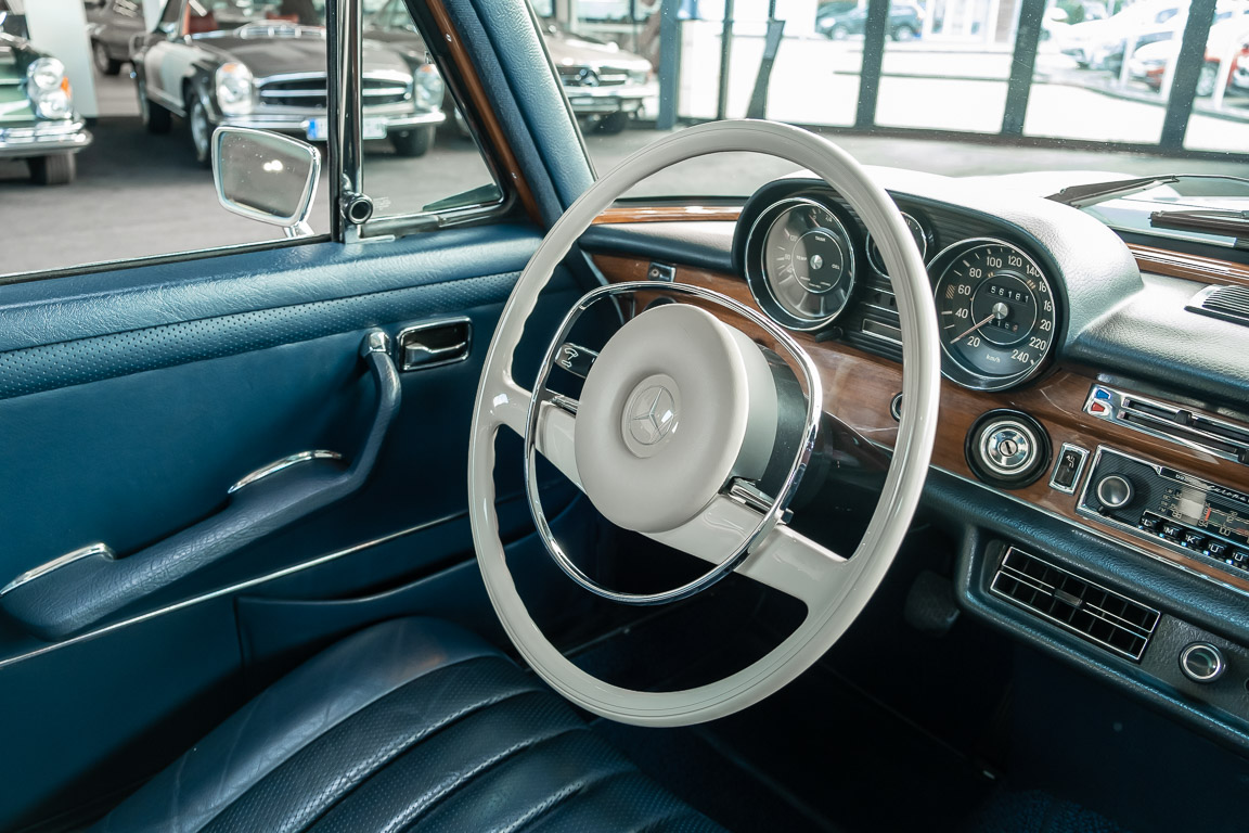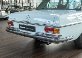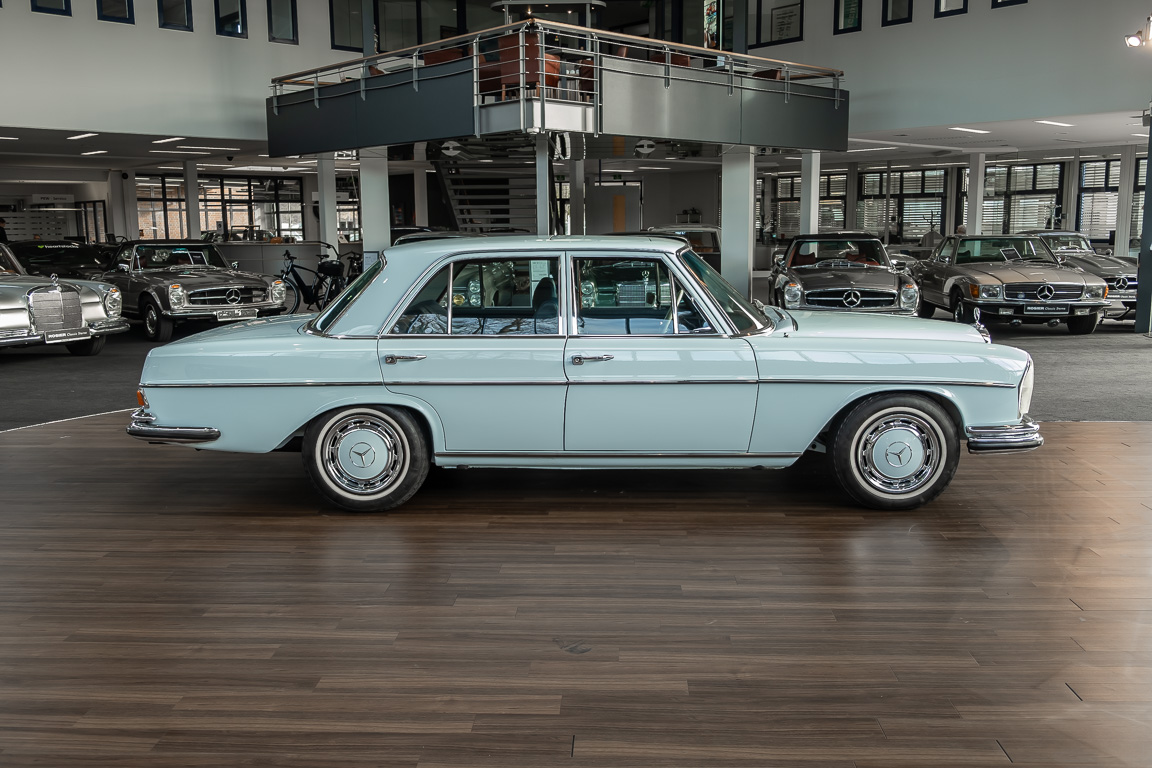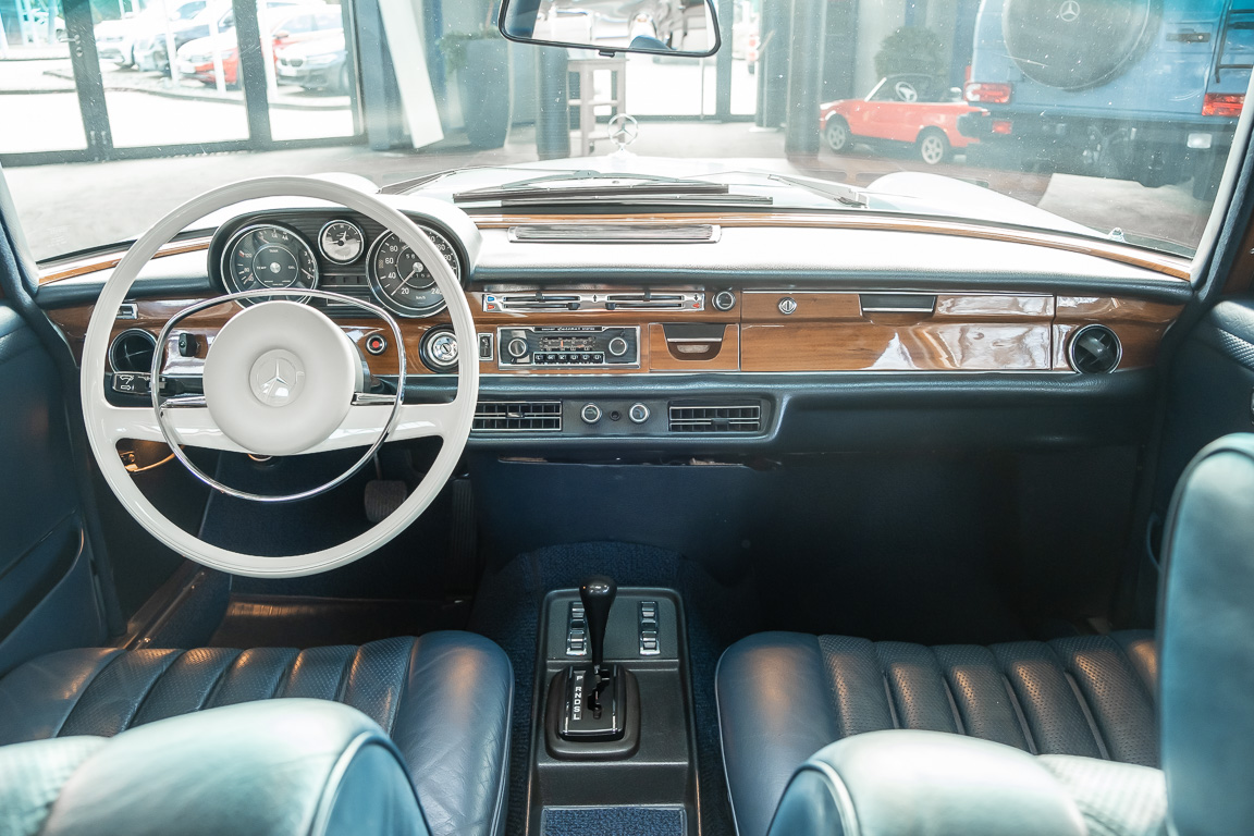 An absolute rarity we may offer you with this 280 SE of the series W108. Hardly any other vehicle of this series has caused such a stir in our house in recent years. The already rare engine in this vehicle is only the beginning of a long list of special features. The legendary 3.5-liter eight-cylinder engine, which is powerful in all situations, operates with a precise quietness that is simply convincing. The equipment of this 70s sedan is another sensation: with leather upholstery, four electric windows, electric sunroof, air conditioning as well as differential lock, the purchase price will have been on a level equal to a W111 coupe. Of course, all comfort features work as on the first day.