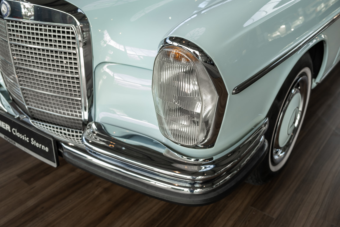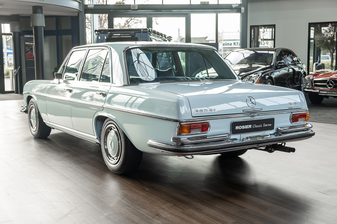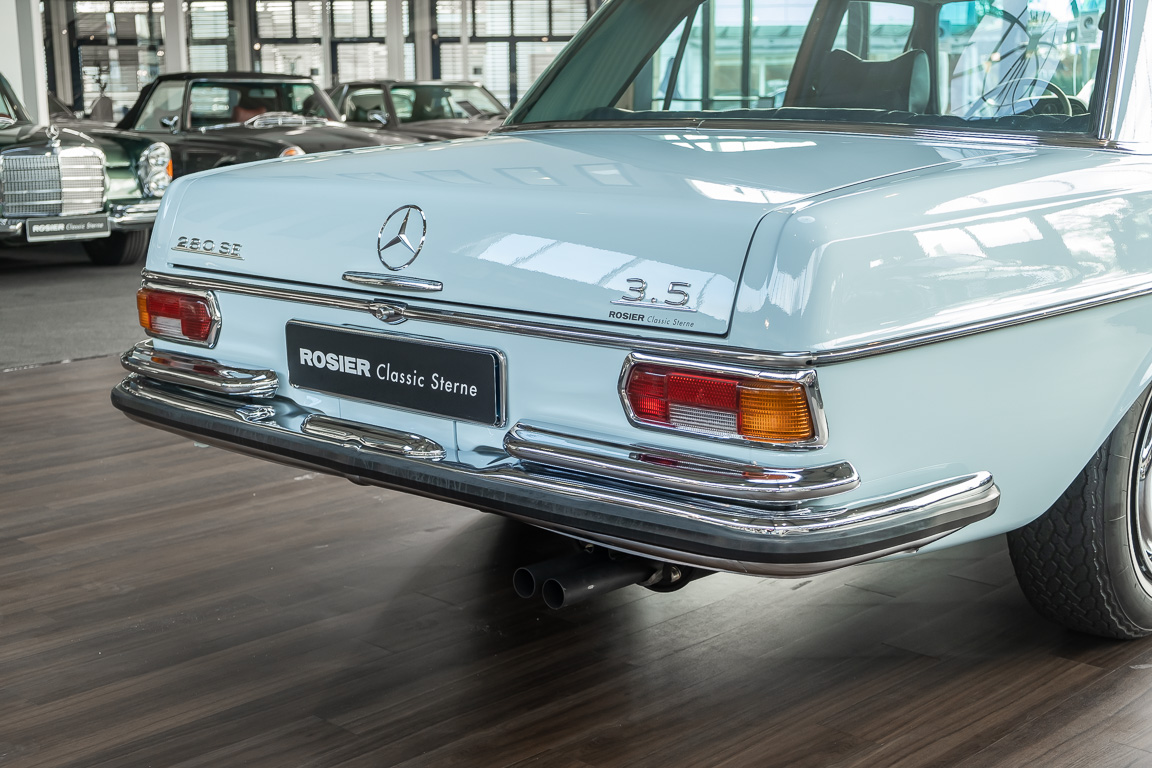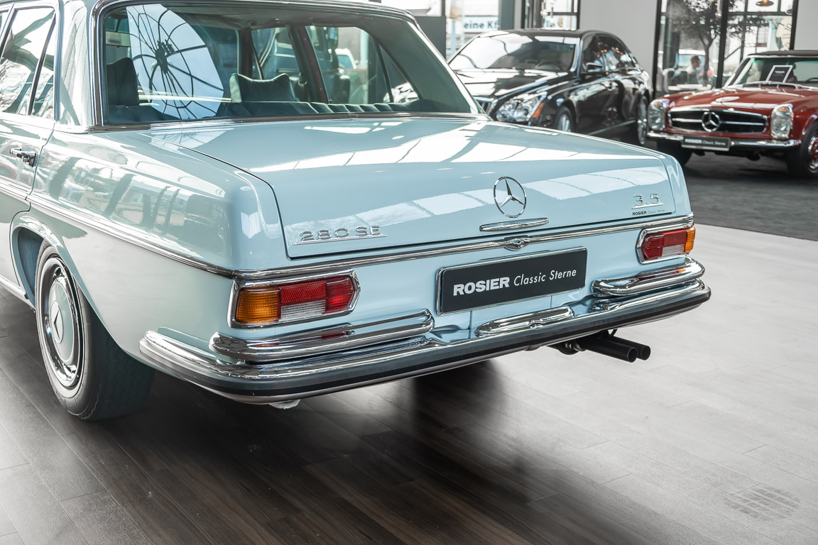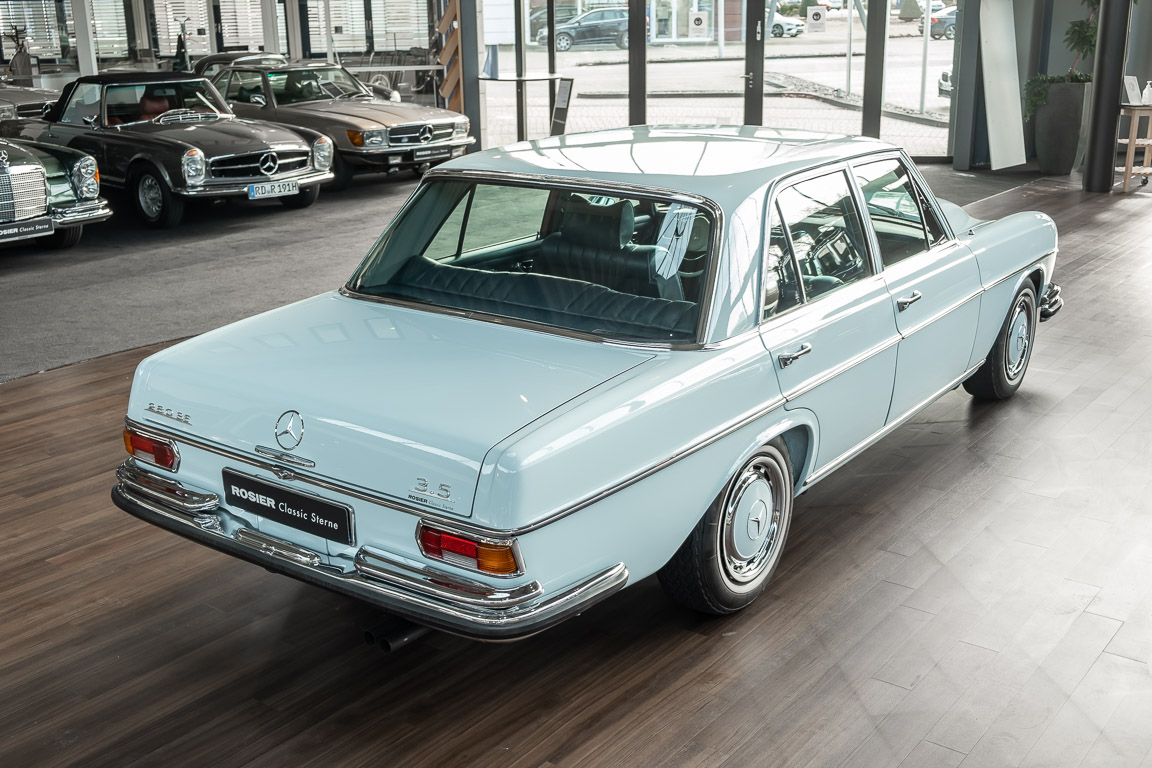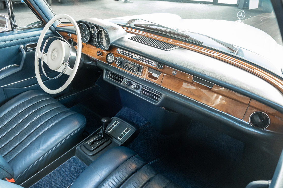 An absolute rarity we may offer you with this 280 SE of the series W108. Hardly any other vehicle of this series has caused such a stir in our house in recent years. The already rare engine in this vehicle is only the beginning of a long list of special features. The legendary 3.5-liter eight-cylinder engine, which is powerful in all situations, operates with a precise quietness that is simply convincing. The equipment of this 70s sedan is another sensation: with leather upholstery, four electric windows, electric sunroof, air conditioning as well as differential lock, the purchase price will have been on a level equal to a W111 coupe. Of course, all comfort features work as on the first day.