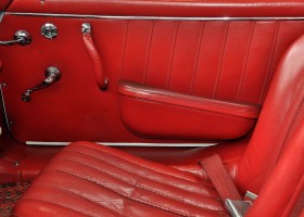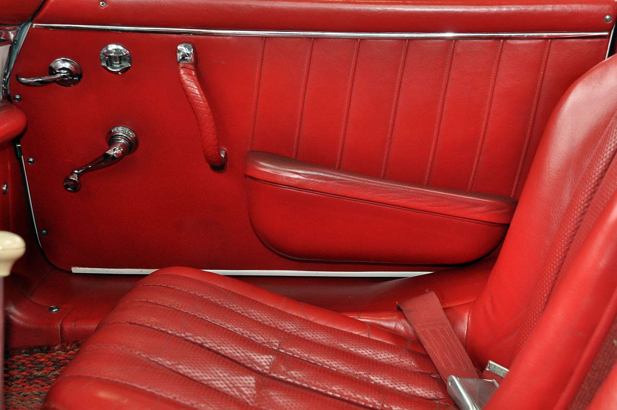 Included a black (040) coupe roof, a black soft top and whitewall tires. The first delivery took place in Europe. In this context it is pleasing to see that the dashboard have been preserved in German inscriptions, including kilometer tachometers. The car was sold in the USA in the 1970s and was at home with very good comprehensible, best addresses. He belonged to the well-known American enthusiast Bruce Meyer in the USA, Newport Beach, California and 1976 Peter A. Tadin in Cupertino, California. The condition of the Roadster is fantastic, the obviously still original, fine patinated leather, was reworked with an earlier restoration of the car.
