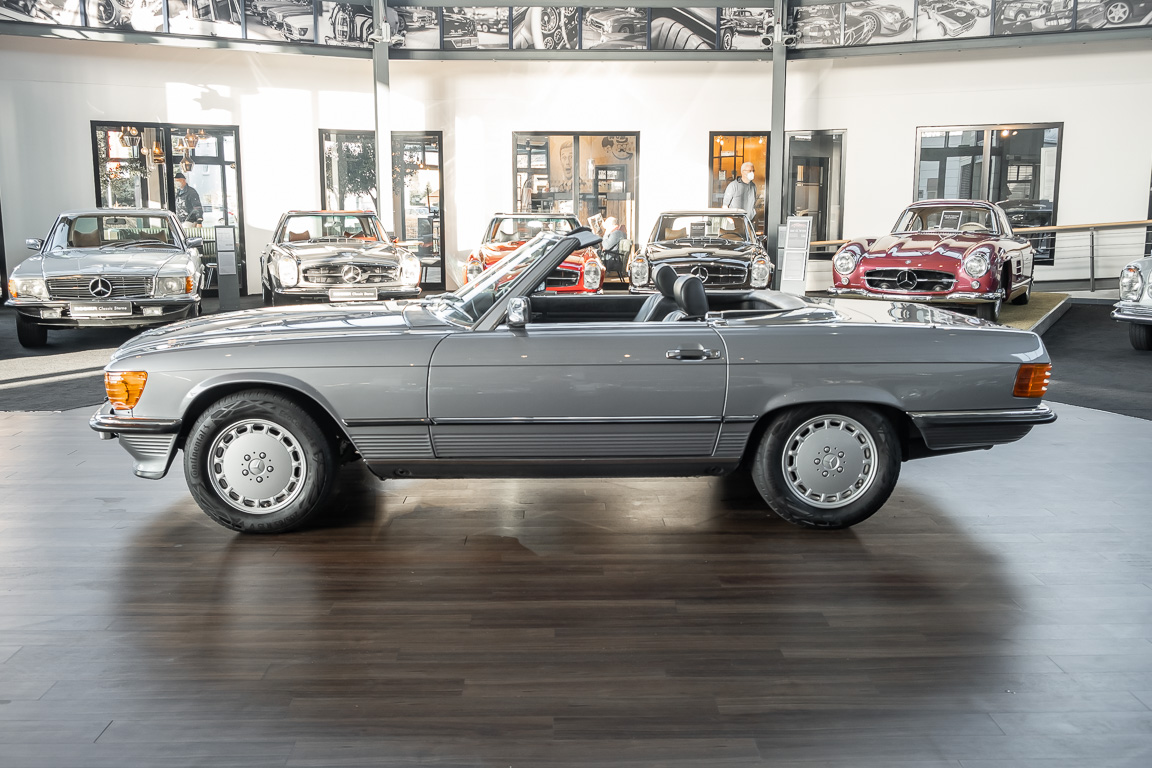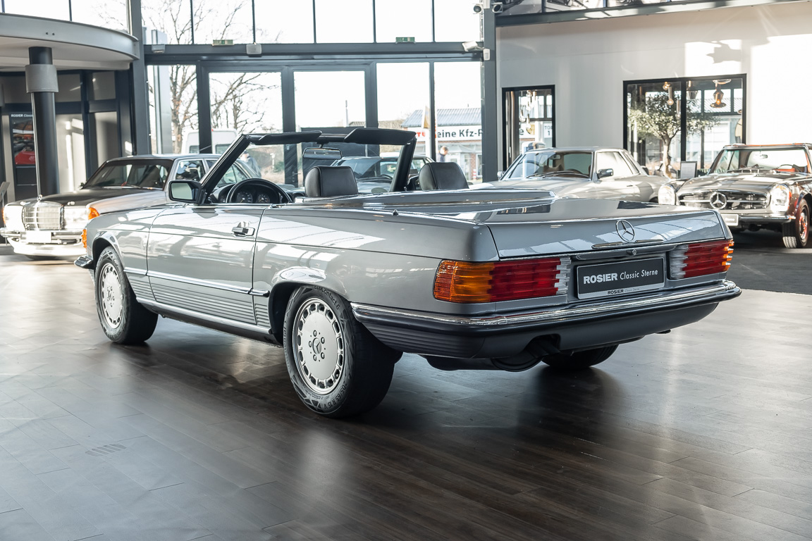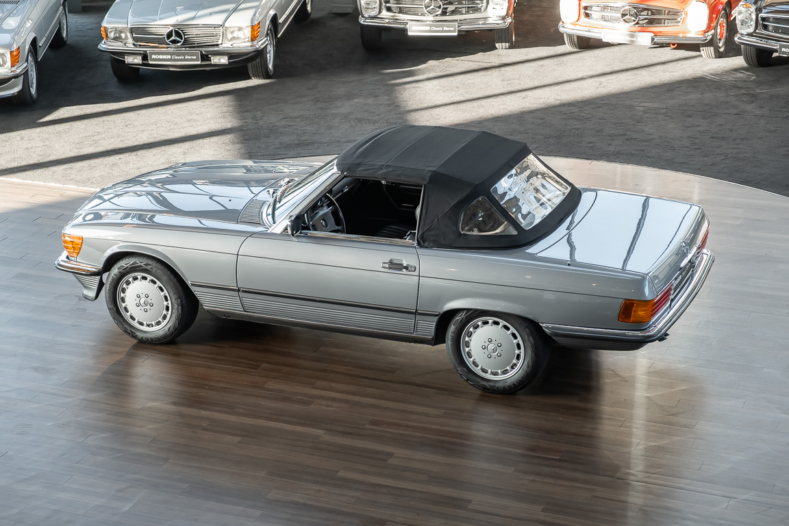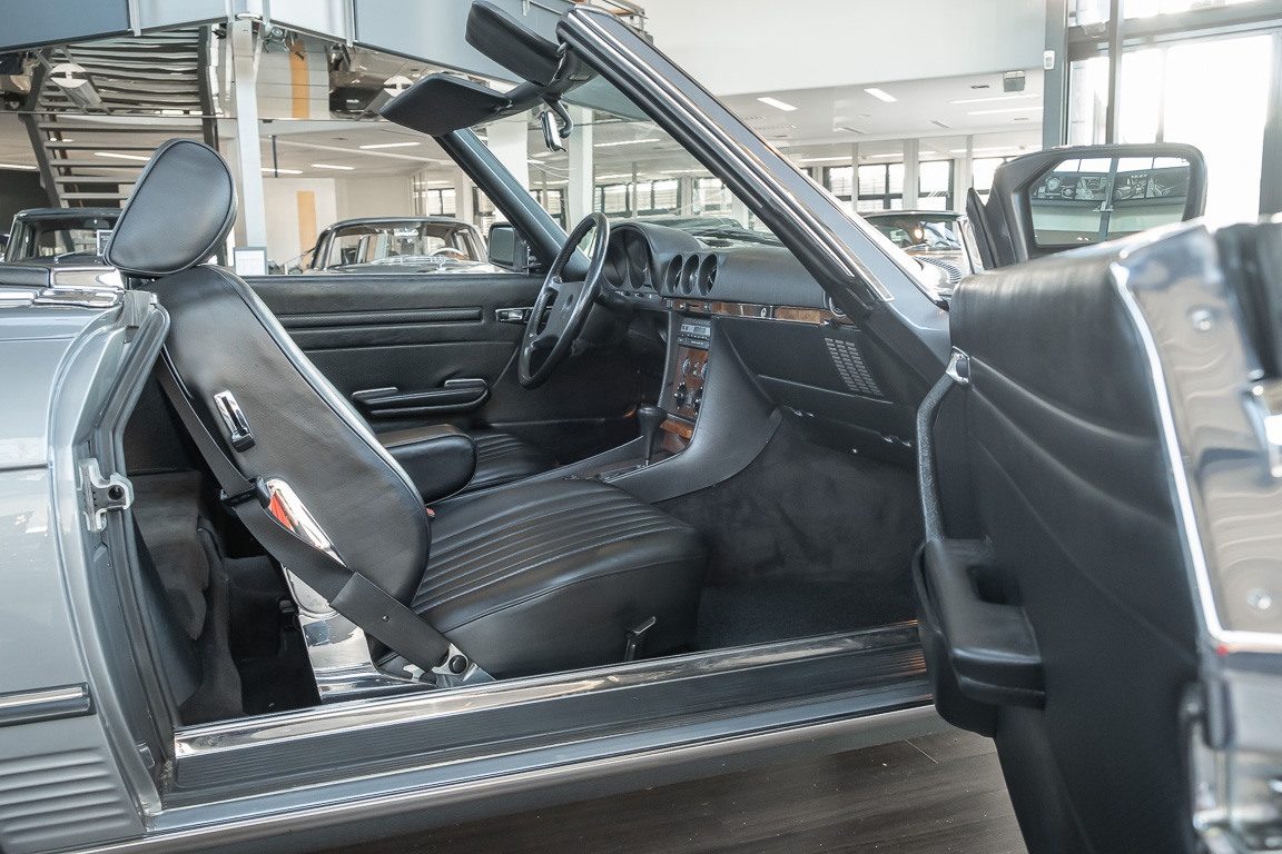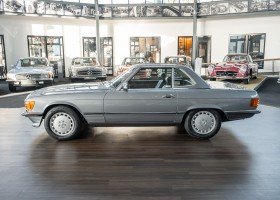 We are proud to offer you a wonderful roadster from the 107 series in the form of this 500 SL - the top SL model of the time. Skilfully this specimen in the color pearl gray metallic stands out from its brothers and sisters in silver and blue-black. In combination with the black leather this 500 knows to set itself discreetly but skillfully in scene. With a quite worth seeing equipment with limited slip differential, air conditioning and seat heating for driver and front passenger hardly desires remained open for the buyers at that time. With just over 160,000 kilometers the vehicle presents itself technically and optically in a remarkably maintained condition. The vehicle has been thoroughly checked and optimized by specialists in our workshop and has undergone major maintenance to make it fit for the upcoming season. Get in and experience the legendary SL-Class in the top model 500 SL.