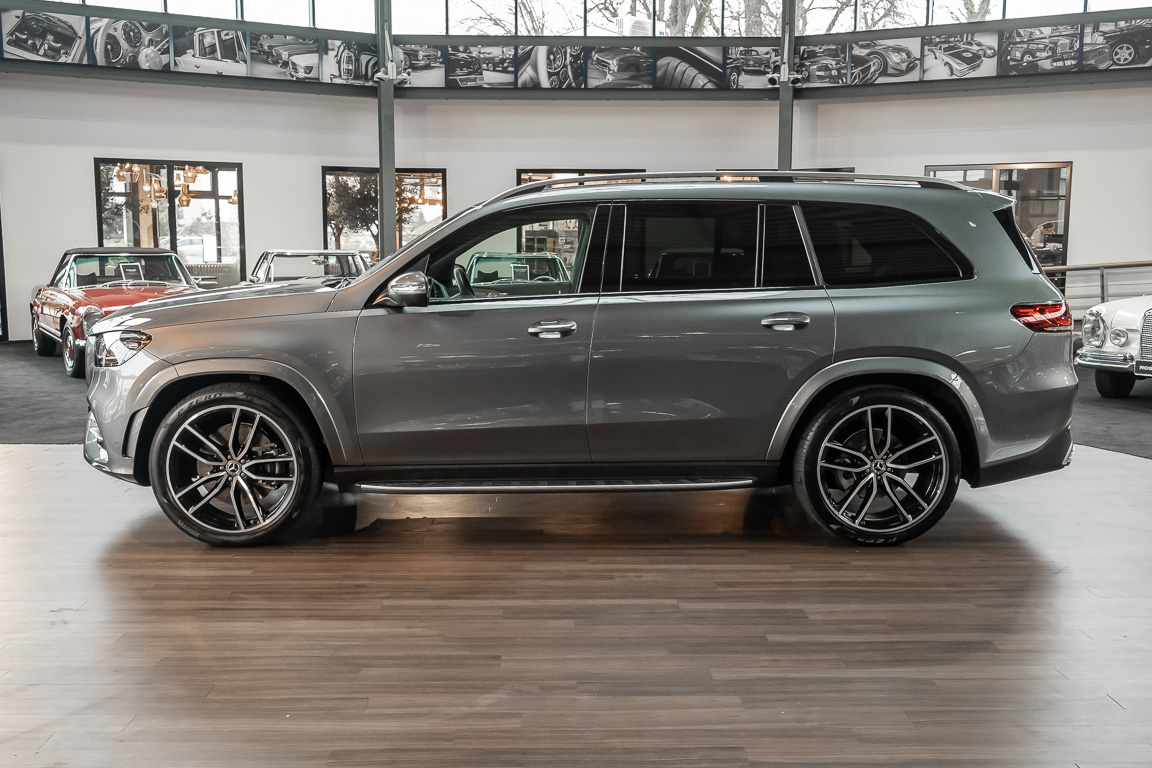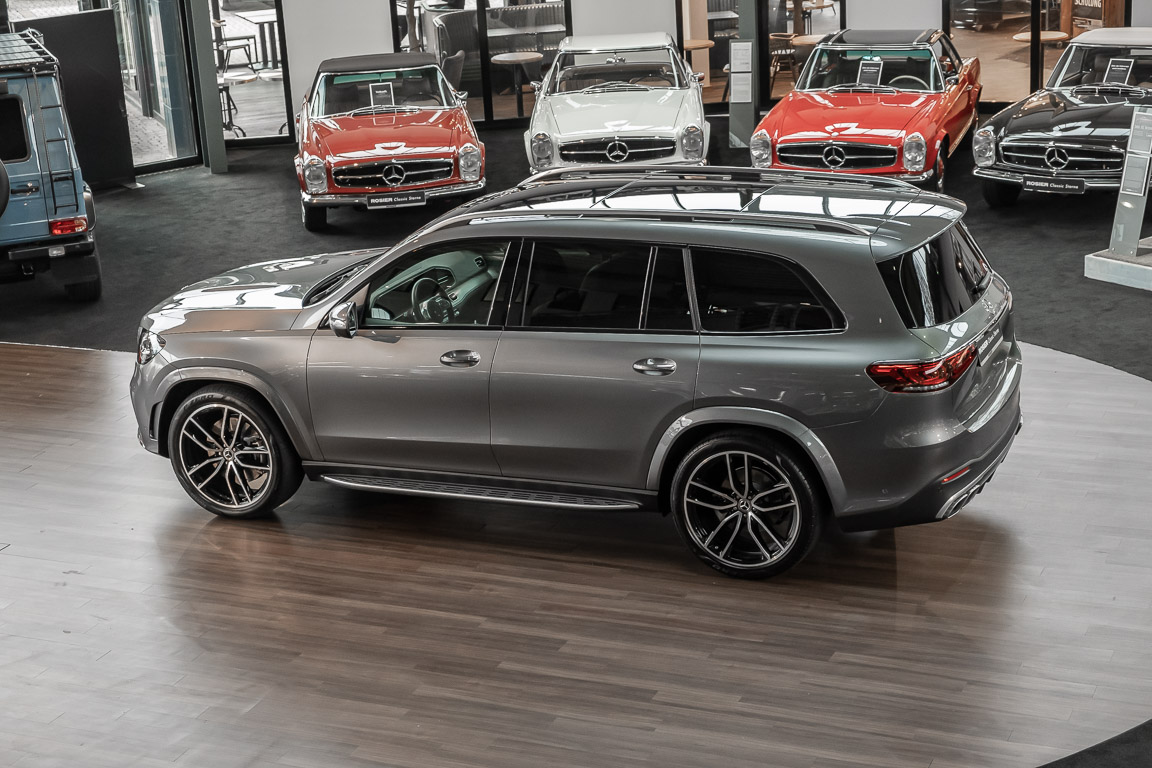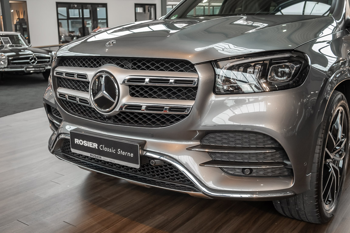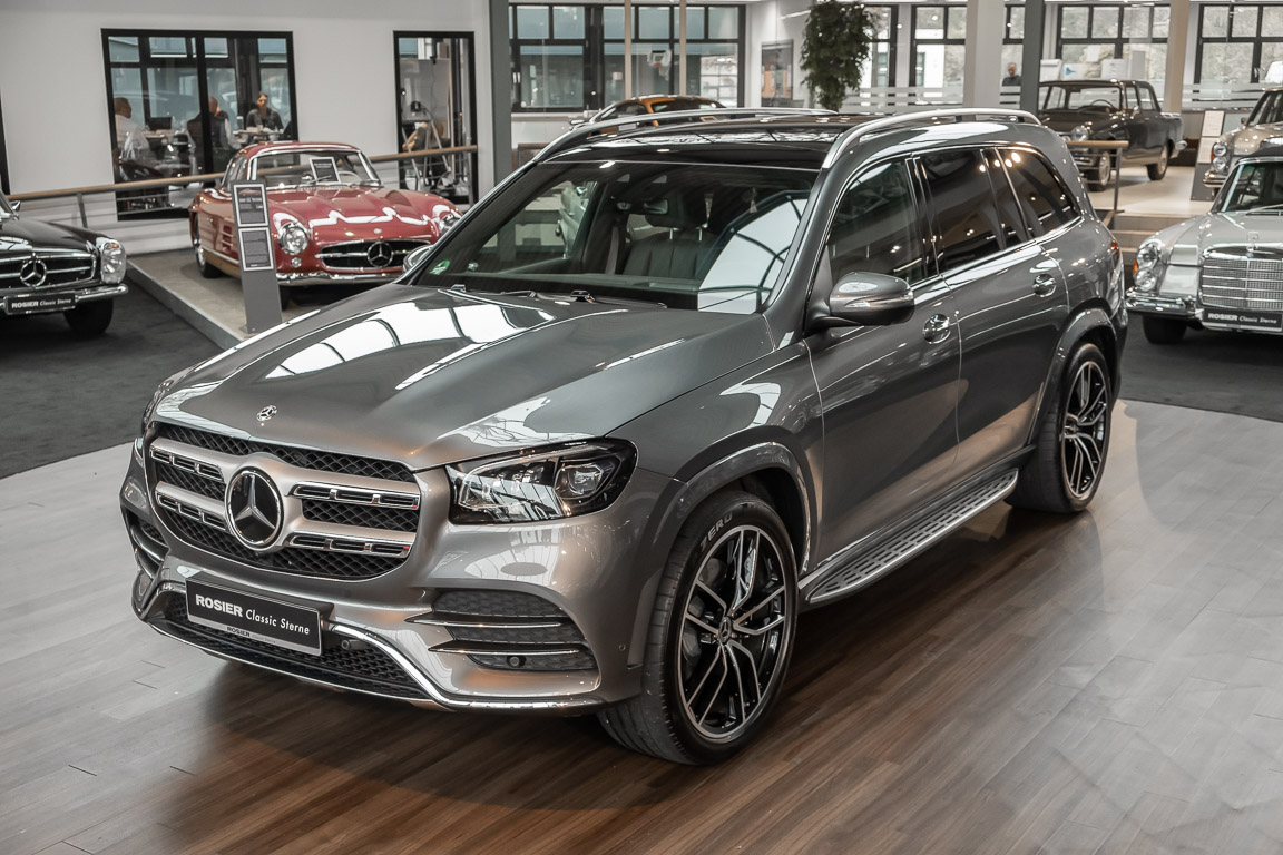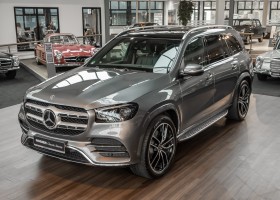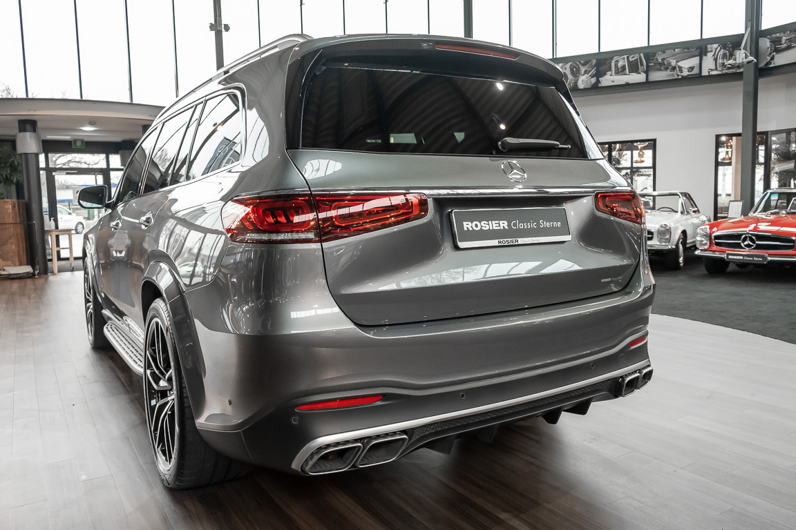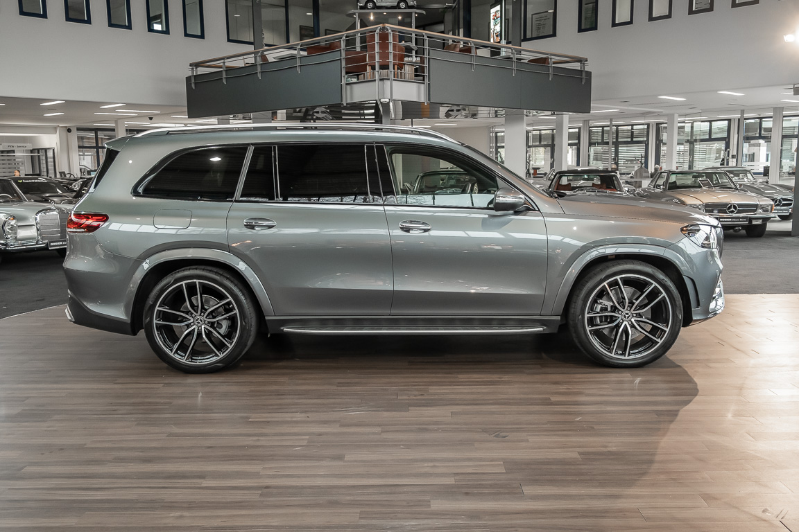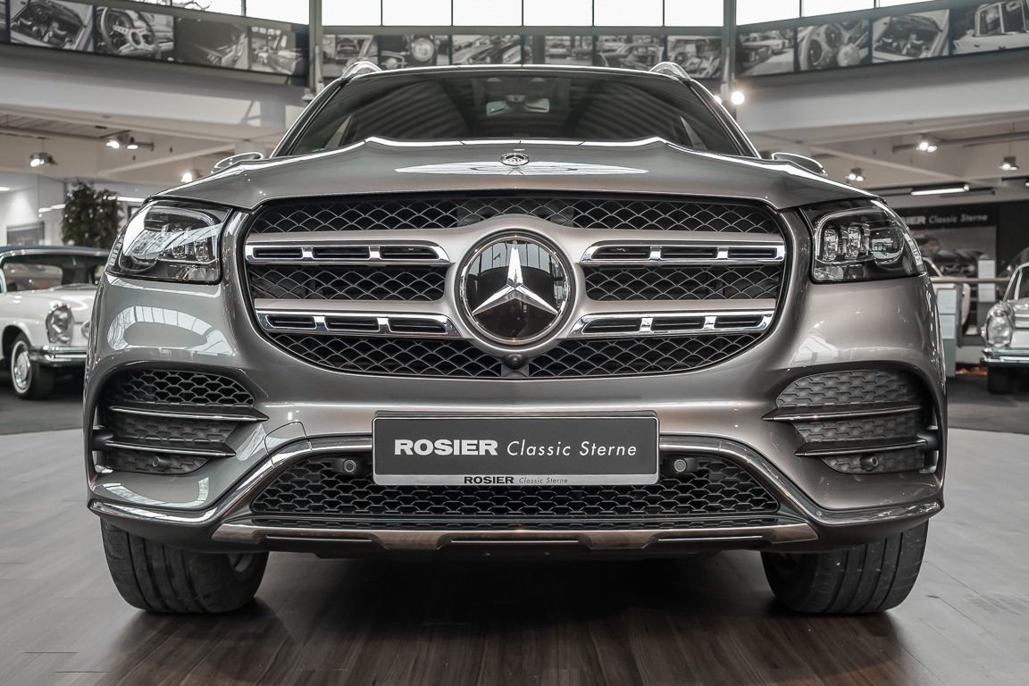 Mercedes-Benz GLS 400 d in selenite gray metallic from 1st hand in top condition and fully equipped. Accident free and repaint free. Individualized with 23 "AMG rims and GLS 63 rear diffuser with exhaust trims.