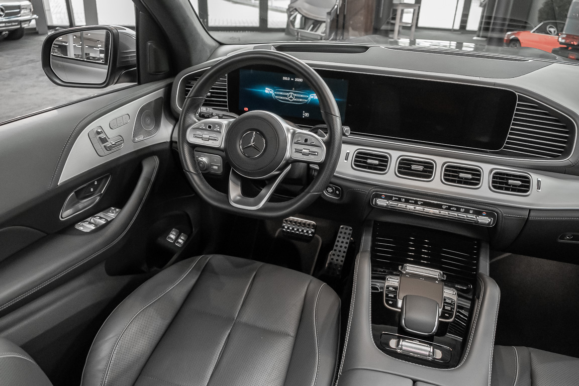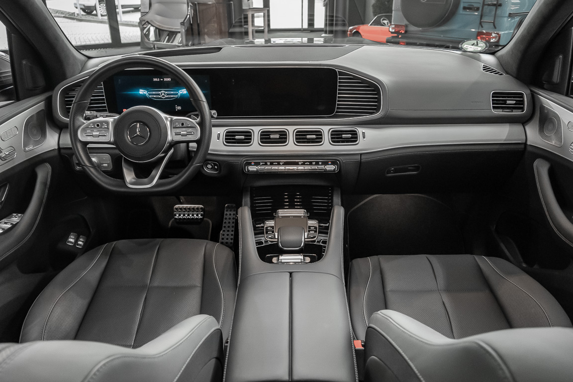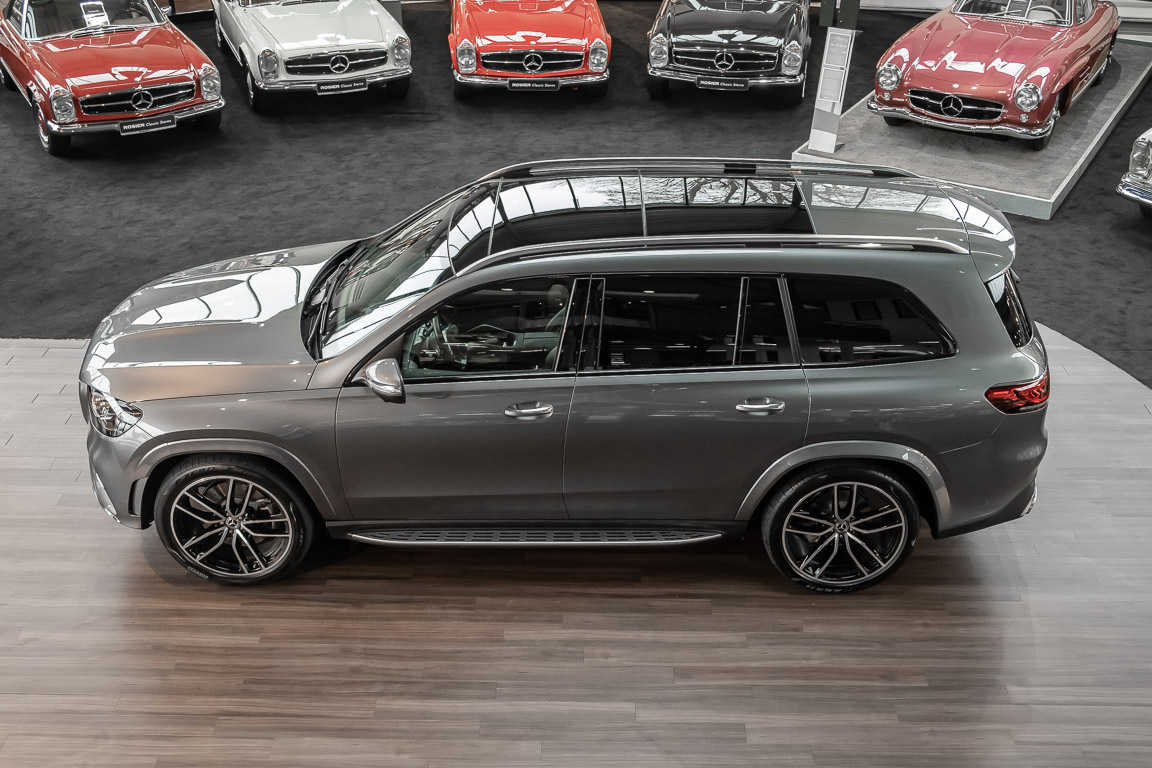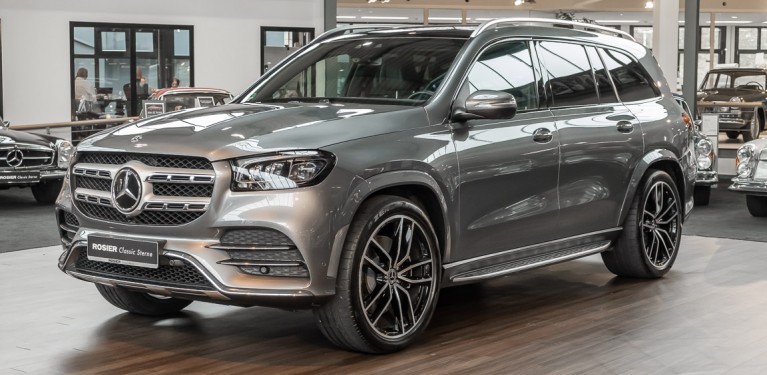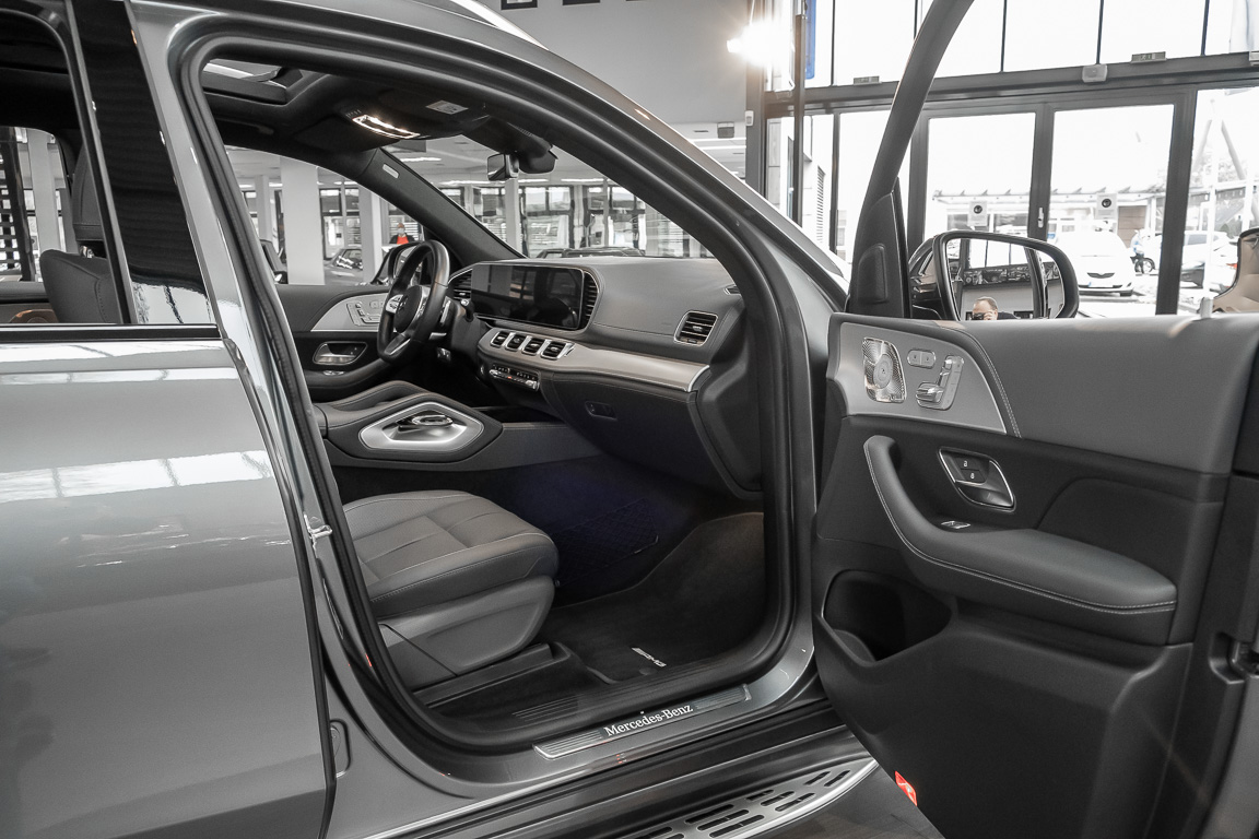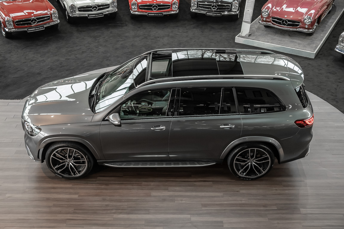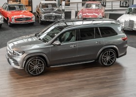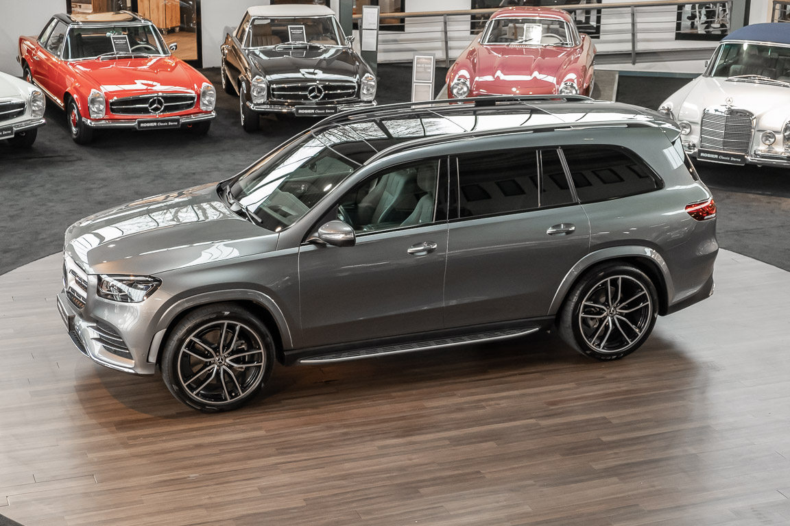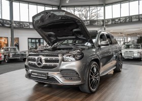 Mercedes-Benz GLS 400 d in selenite gray metallic from 1st hand in top condition and fully equipped. Accident free and repaint free. Individualized with 23 "AMG rims and GLS 63 rear diffuser with exhaust trims.